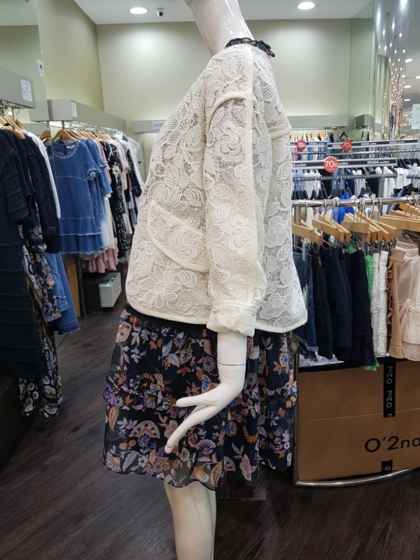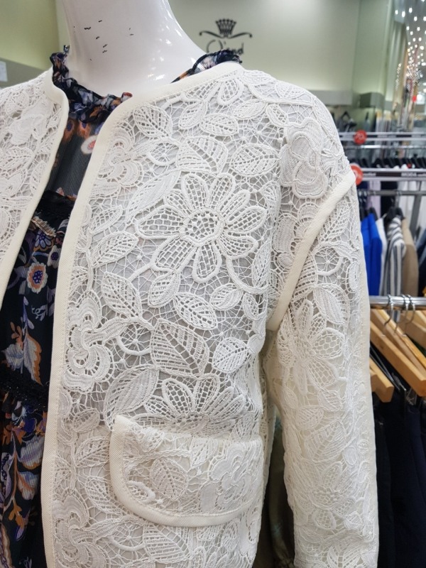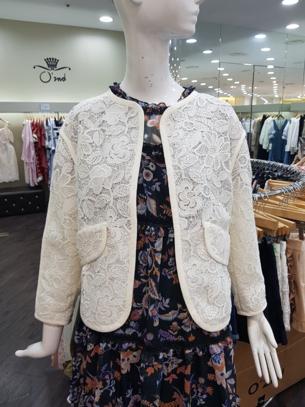 여밈이 없는 스타일의 자켓으로 전체적으로 수가 들어가 있어 고급스러움을 더해줍니다.소매를 살짝 접어 걷어올려 연출하시면 더 이쁘게 착용이 가능합니다.