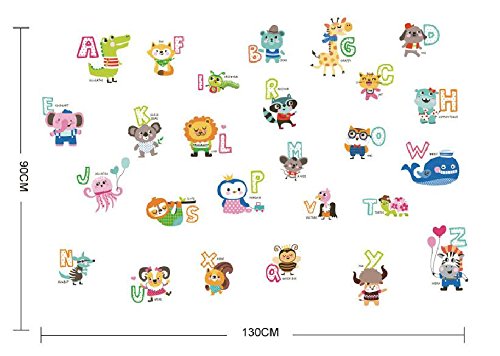 -. Binding : Kitchen -. Brand : YATE -. Feature : Material: PVC. Brings color and overall good feels to any room / Ideal to decorate nurseries, children's bedrooms, playrooms, classrooms etc within seconds / Gently remove and add to a bedroom or playroom wall / Perfect way to help your child easily learn the Alphabet and animals, in a fun way / Size: 100x140cm (9.3 x 50.0 inch) -. IsAutographed : 0 -. Label : YATE -. Manufacturer : YATE -. PackageQuantity : 1 -. ProductGroup : Home -. ProductTypeName : HOME -. Publisher : YATE -. Studio : YATE -. Title : Kids Rooms Animals ABC Alphabet Baby Nursery Peel & Stick Wall Art Sticker Decals