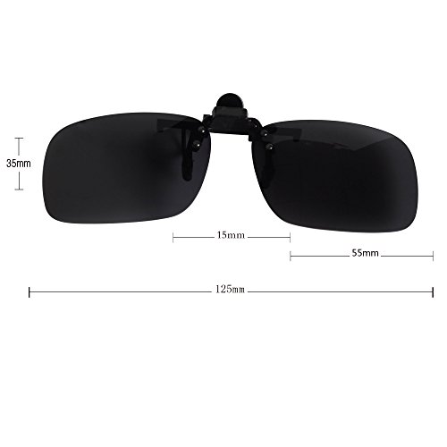 *Product Dimensions * Lens Height: 35mm Lens Width: 55mm Bridge: 15mm Frame Total: 125mm *Polarized lenses* -which could improve your vision and sharpen your eye sight. *UV400 Lens Technology* -absorbing over 99%of harmful UVA&UVB spectrums. * metal clip & rubber cover on each leg * -The clip is forged by premium metal material and with rubber cover on each leg. -Provides you a durable, sturdy and protective product . *Easy to clip on to any regular glasses* Package : 1pcs sunglasses clip,1pcs clean cloth,1pcs test card and 1pcs pouch. -------About Besgoods------- We provide our customers with eyewear that have exceptional style combined with an affordable price . Our selection of sunglasses range from cutting-edge to classic timeless designs .In today's fast pace fashion trends ,sunglasses from Besgoods is a must ! If you have any dissatisfaction with our products ,please contact us.We will make every effort to ensure a good shopping experience for our customers .Feature