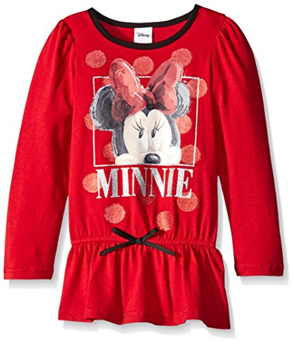 Disney Little Girls' Minnie Long Sleeve Fashion Top, Rocker Red, 6