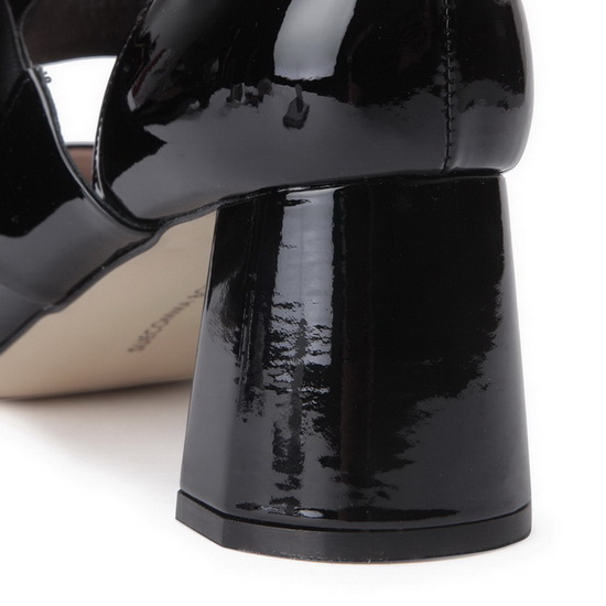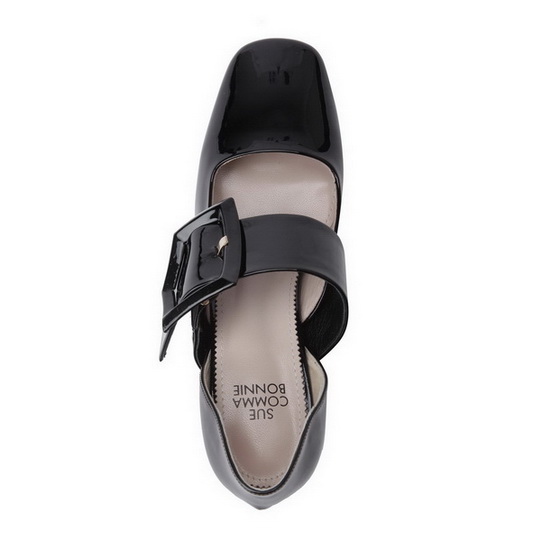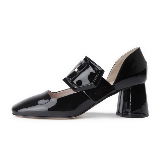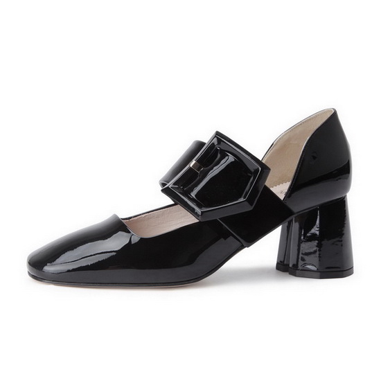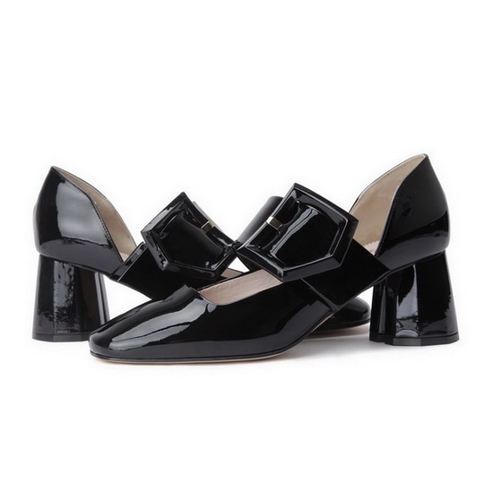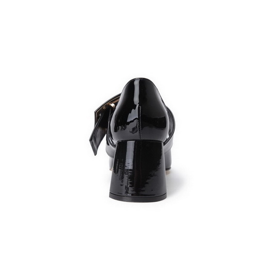 - 다각형 버클 장식이 돋보이는 미들 펌프스.