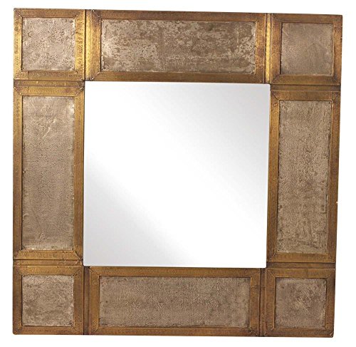 SouvNear 190803088999 Square Wall Mirror with Brass and Wood Frame, 24"
