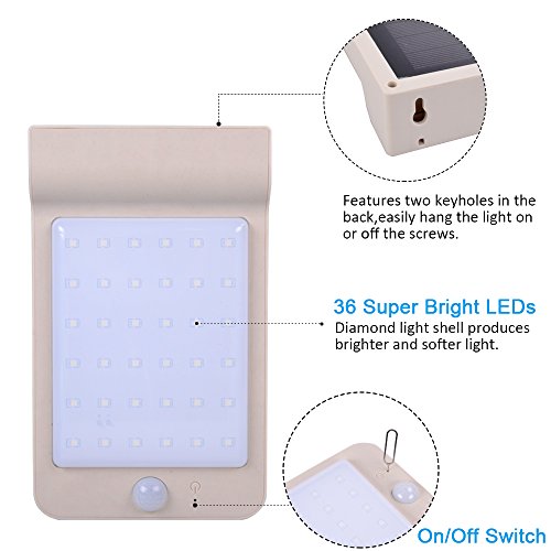 - Package includes: 2 Pack Big solar panel & Super bright 36 LED solar lights.2 Pack install sets and key pins. A user manual.