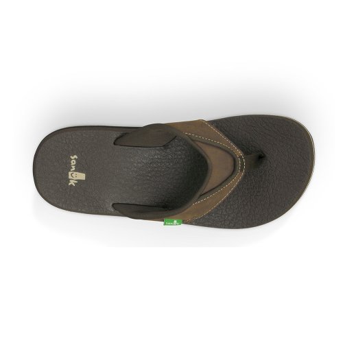 Amazon.com Truth is, your foot is far more suited for the Beer Cozy Primo flip flop from Sanuk than a can of brew. With its super-soft, fabric-lined straps and cushioned, anatomical footbed resting on a flexible rubber outsole, it's a perfect sandal for kickin' back. Of course, you can always hold a beer in your hand while kickin’ back in this comfy sandal. 0