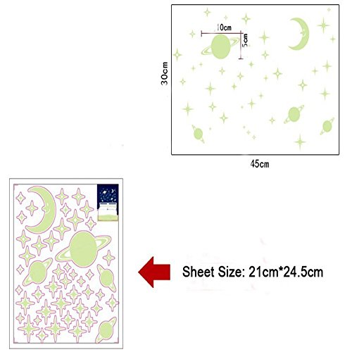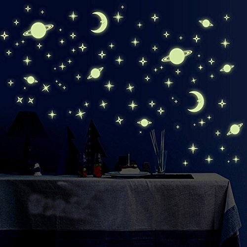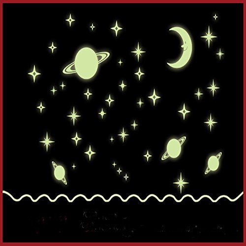 ufengke Moon and Stars Wall Decals Fluorescence Stickers Glow In The Dark, Children's Room Nursery Removable Wall Stickers Murals