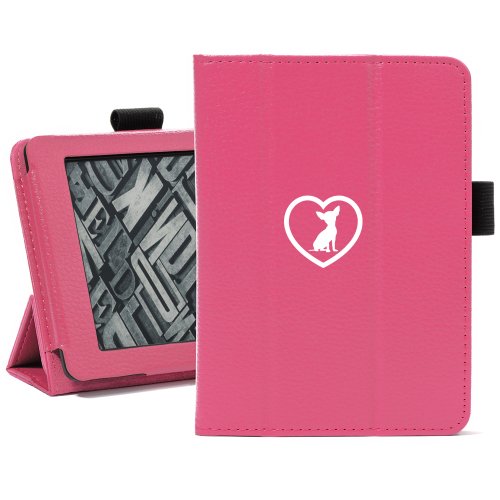 -. Title : Hot Pink Amazon Kindle Paperwhite Leather Magnetic Case Cover Stand Chihuahua Heart