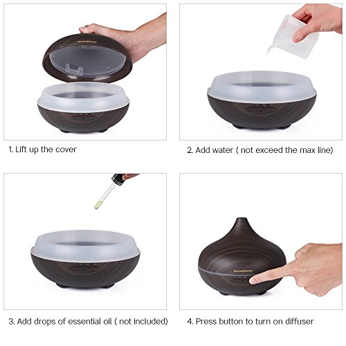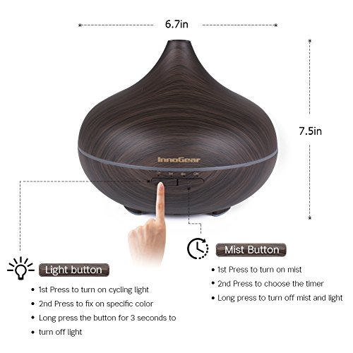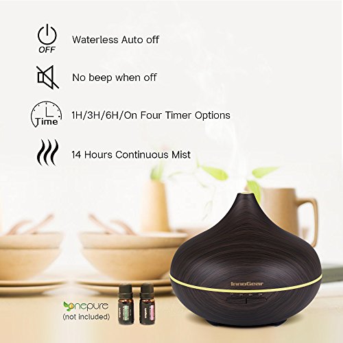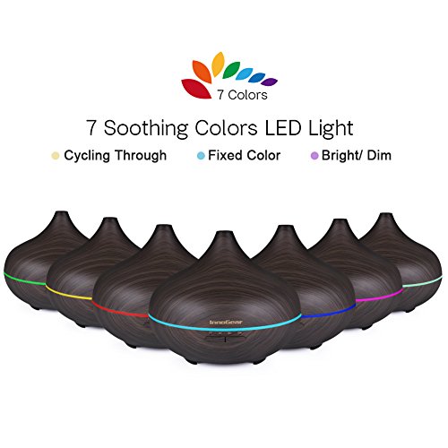 InnoGear 500ml Aromatherapy Essential Oil Diffuser Wood Grain Aroma Diffusers Cool Mist Humidifier with Timer Adjustable Mist 7 Color Changing Night Lights...