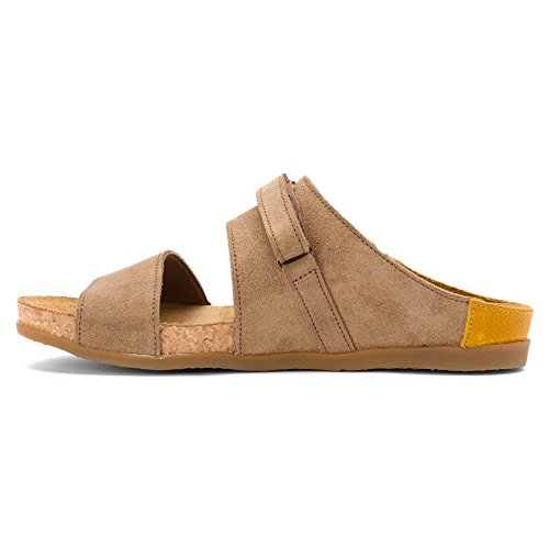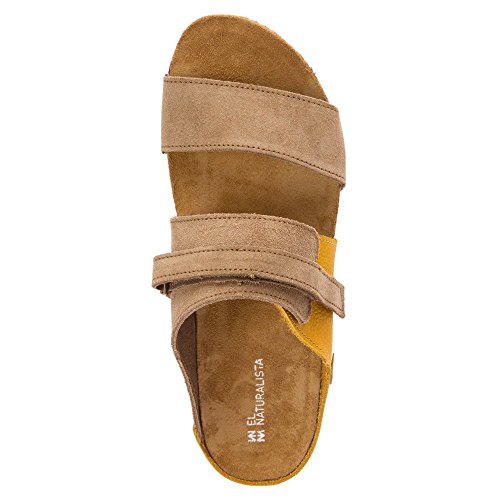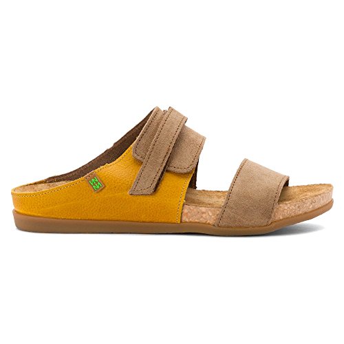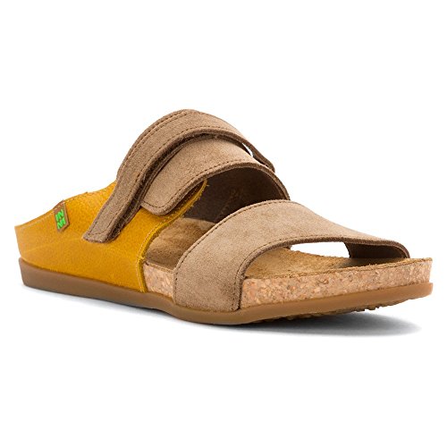 Studio : El Naturalista Publisher : El Naturalista Binding : Apparel Product Description Slide cork footbed sandal with an adjustable strap over the instep. The beautiful leather color combinations make this style a truly unique sandal. Handmade in spain by skilled craftsman with years of experience. This is a very natural leather, with a rustic appearance, treated with natural oils in a traditional way. When you touch it and wear it, you will experience luxurious softness. This sandal has a comfort last with a slanted design that fits with the natural shape of the foot. It has been made by studying the anatomical shape of the foot so that the shoes are replicas of the natural design of our feet. This ergonomic shape does not compress the foot when either walking or at rest, providing great comfort and health with every step. This anatomically designed insole is made of recycled cork. Their role is simple but extremely important: they fit the shape of the foot like a Glove. Thus, when walking, the weight is distributed optimally throughout the sole of the foot and the impact is absorbed, avoiding damage to the sensitive areas. In other words, every step is a pleasure. The outsole is made of natural rubber for flexibility, durability and shock absorption. Environmentally minded El Naturalista uses recycled materials whenever possible, only recycled rubber or natural rubber, water-based glues, leathers that are vegetable tanned and packaging from recycled materials. 0