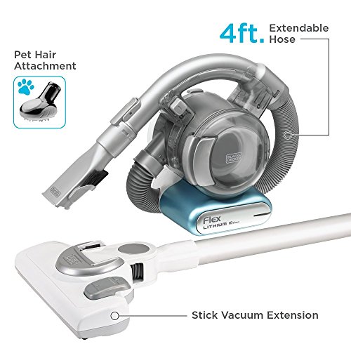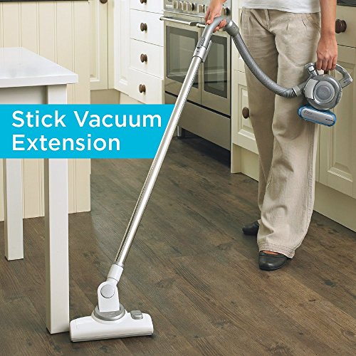 The stick vac floor extension converts Flex vac for larger cleaning jobs, along with a 4ft flexible hose and attachments for convenient, cordless cleaning that reaches everywhere. This Hand Vac also comes with a rotating slim nozzle, an on-board upholstery brush, and a crevice tool.