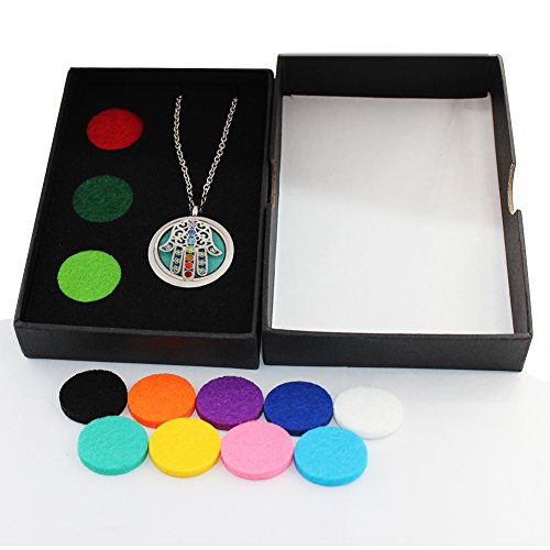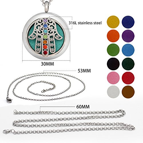Aromatherapy Essential Oil Diffuser Necklace Locket Pendant with 12 Washable Pads + 2PCS Chain 316L Surgical Stainless Steel Jewelry Gift Set(Fatima Eye...