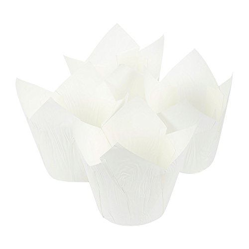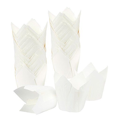 Cupcake Liners Tulip 100-Piece - Bulk Decorative Paper Cupcake and Muffin Baking Cups for Weddings, Birthdays, Baby Showers, White