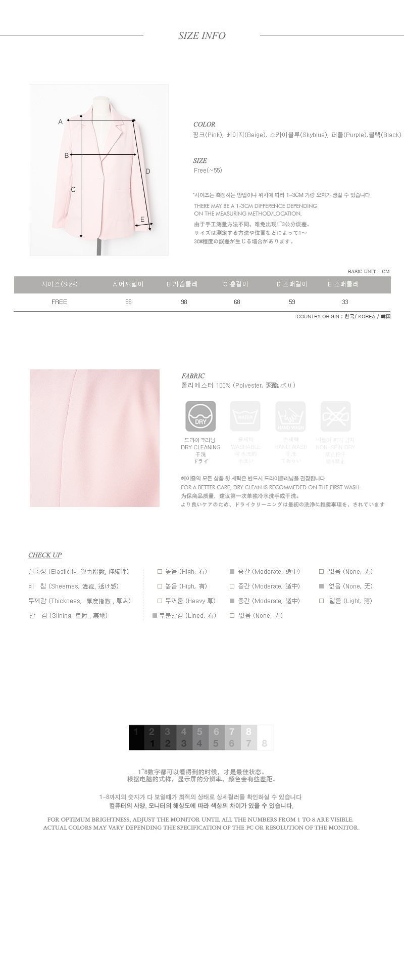 베이직하고 깔끔한 핏감의 자켓 아이템을 소개해드릴께요~^^ 깔끔한 핏감의 자켓 아이템으로 모던하고 스타일리시한 분위기의 코디매치를 할 수 있어요~ 프론트 양사이드 빅포켓이 가미되어 세미캐주얼룩으로도 연출할 수 있답니다 봄 시즌에 알맞은 화사한 컬러감이 돋보이는 모던한 자켓 아이템으로 다양한 스타일링을 완성할 수 있어요~