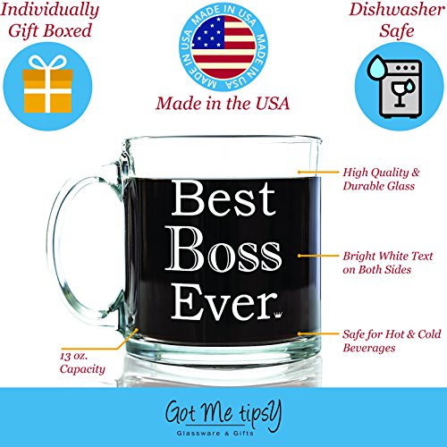 - Title : Gifts For Boss: Best Boss Ever Glass Coffee Mug 13 oz - Great Work Present Idea - Perfect Office Gifts For Coworker or Manager - Great Birthday Gift For Mom or Dad, Coffee and Tea Lovers