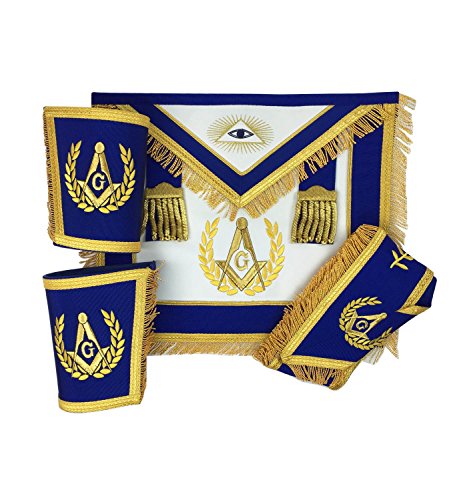 -. Title : Masonic Master Mason Apron Set Gold Apron, Collar and gauntlets