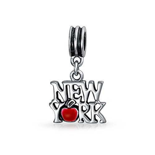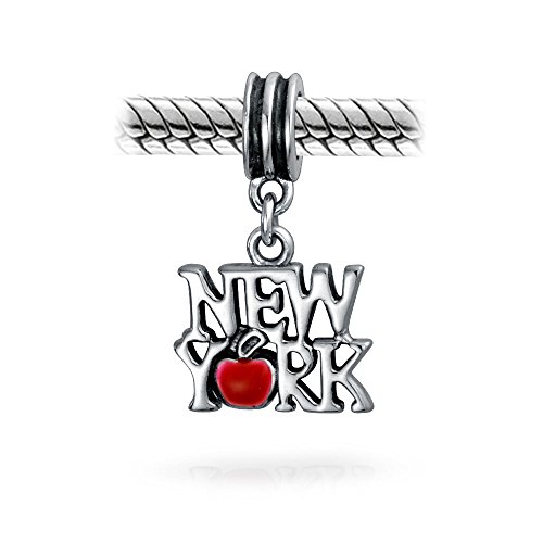 BLING JEWELRY 925 SILVER NEW YORK RED ENAMEL APPLE DANGLE CHARM FITS PANDORA