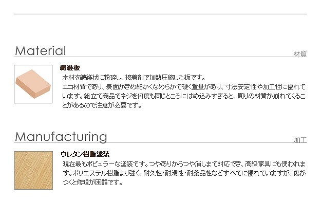 材質:天板-繊維板(転写プリント)、脚部-繊維板・天然木(パイン)、ウレタン樹脂塗装