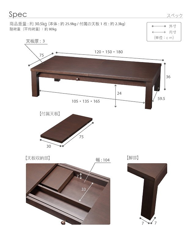 サイズ(cm):幅120/150/180x奥行75x高さ36・約30.5kg