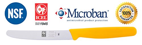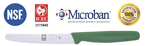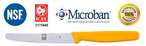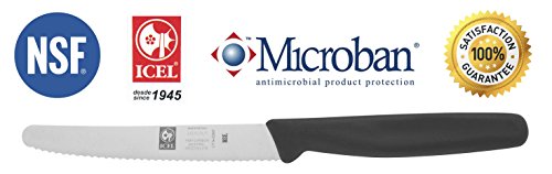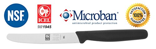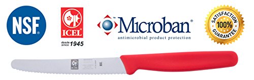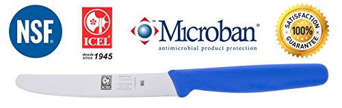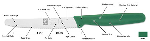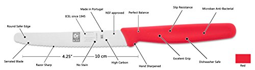 THE BEST QUALITY.- The blade length is 4.25-inch long. Round tip. Serrated edge. Made of high carbon stainless steel. Hand sharpened to make sure this will stand up for years of daily use without undue deterioration or wear. This 4.25-inch steak knife handles are made of the patent PROFLEX antibacterial polypropylene the best and durable handle texture available on the marked. It is a good grip and slip resistance handle.