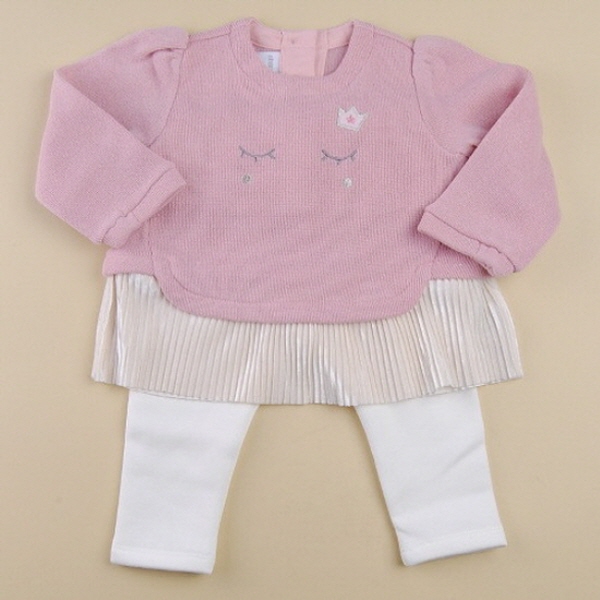 상의는 긴기장으로 원피스느낌으로 착용할 수 있으며 밑단의 퍼배색이 멋스럽습니다.