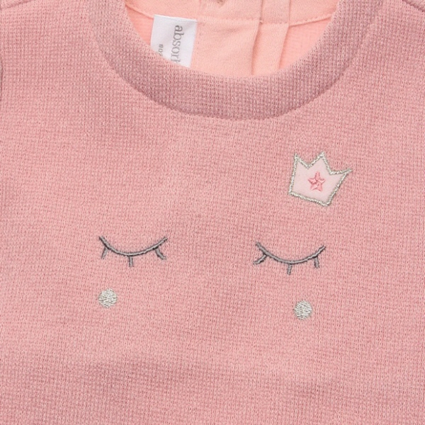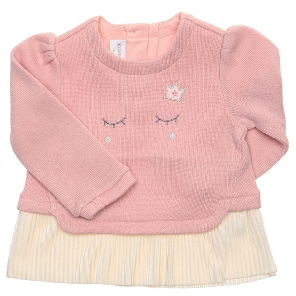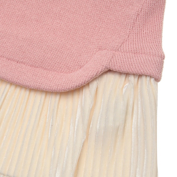 귀여운 자수포인트의 티셔츠에 고급스러운 벨벳주름원단이