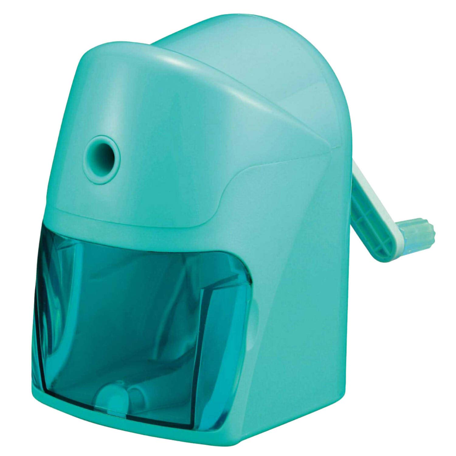 【サイズ】奥行12cm×幅7.9cm×高さ12.3cm 【材質】(本体)ABS、PS、(切削部)スチール、亜鉛ダイキャスト 【削れる鉛筆】六角軸、丸軸、三角軸 【必要回転数】約17回転で鉛筆を削れます。 【カラー】ミントグリーン