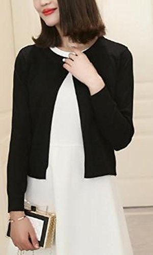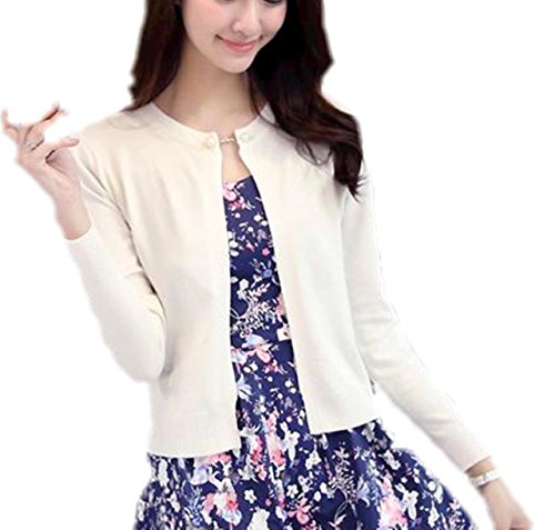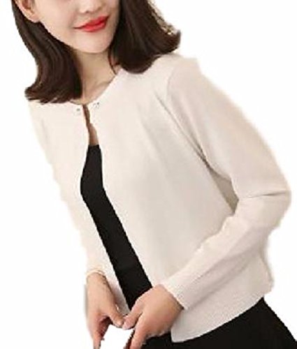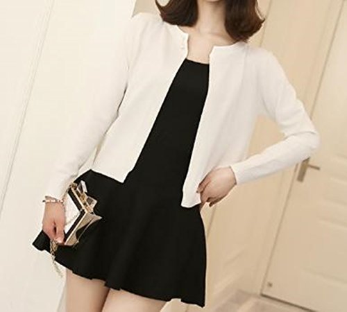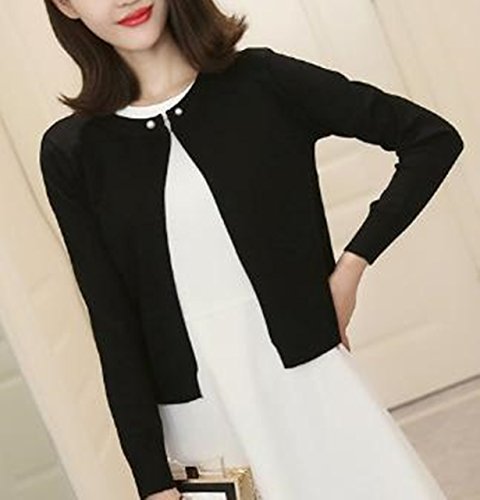 -. Title : アルバフィカ(albafica) レディース 長袖 パール調ボタン ニットカーディガン ショート丈 ホワイト ブラック