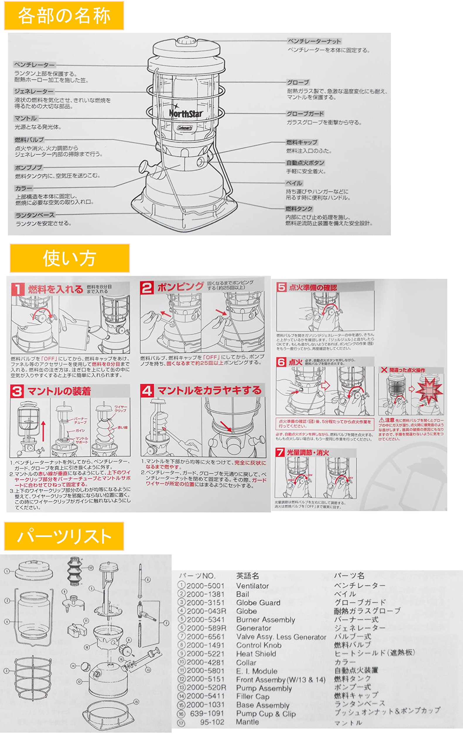 ● Gasoline Lantern: Excellent economy of about 40% fuel cost compared with LP gas lantern.