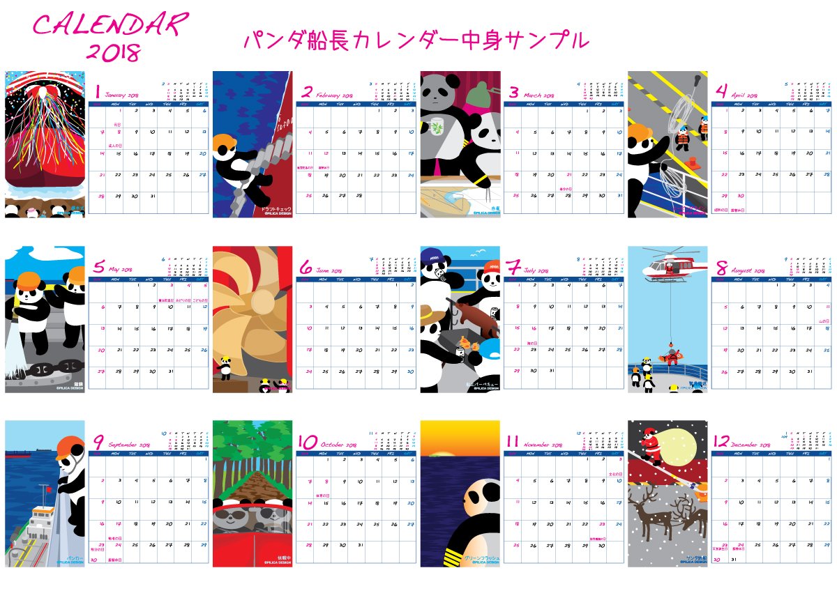 PILICA DESIGN Original Panda Captain The monthly turn table calendar of the month 2018.