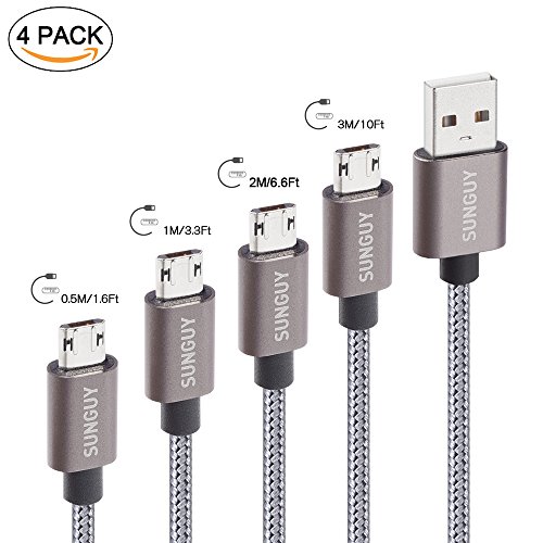 -. Title : Reversible Micro USB Cable,SUNGUY 2-Pack 3M/10ft Double Sided Nylon Braided Durable Plugable Charging Data Sync Cable Cord for Samsung ,HTC, Motorola, Nokia and More (Grey)