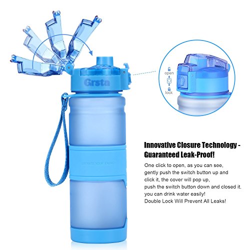 ✔ EASY TO CARRY WITH AND USE: We designed the Grsta water bottles which looks and works better than any other water bottles! It is ergonomically shaped to make one-handed use a breeze, with a tough carry-strap and a special reflective frosted casing that reacts uniquely to your environment. Around the bottle of silicone layer can be anti-slip and provide a more comfortable feeling in your hand.