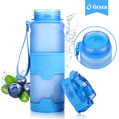 ✔ DURABLE FILTER LAYER: Grsta water bottles has a removable filter that comes in and out on the top. It's perfect for fruit infuser, can add all your favorite fruit like lemon,watermelon or mint. And it also has a wide mouth to add ice cubes and makes cleaning is much easier. Suitable for both warm and cold beverages[-10 to 113 ℃ ]. No "plastic" taste at all.