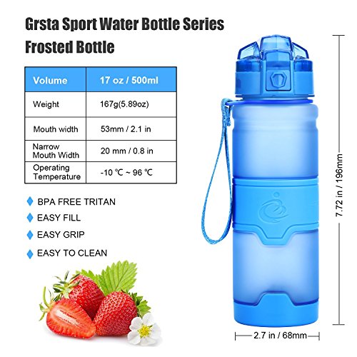 ✔ ECO-FRIENDLY MATERIAL: Grsta BPA free water bottles are made of 100% phthalate free & non-toxic US imported TRITAN co-polyester plastic, that is SAFE to our body and environmentally friendly. Which is shatter-proof, scratch-resistant, leak-proof, eco-friendly, No odor. A drinks water bottle for kids which is healthy and detox, fitness.