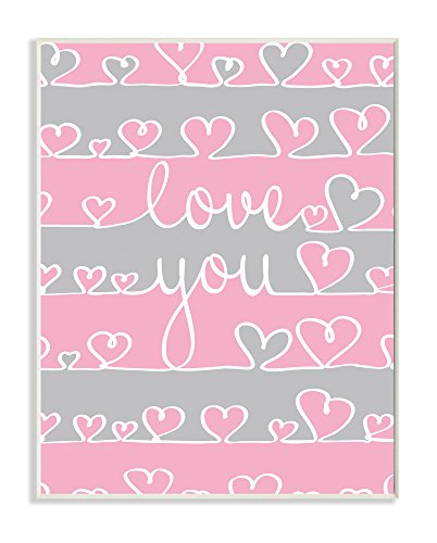 Stupell Home Décor Love You Pink And Gray Hearts Textual Art Wall Plaque, 11 x 0.5 x 15, Proudly Made in USA