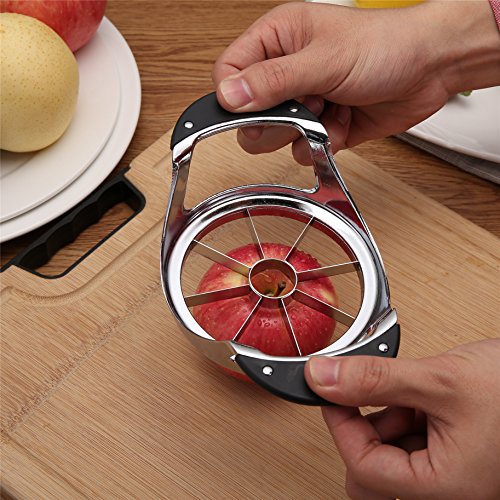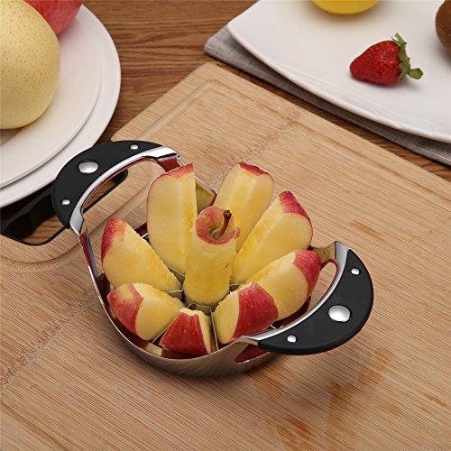 ?High Quality Material Craftwork - Stainless Steel AppleSlicer is Ultra sharp. Made of SUPER quality 304 grade stainless steel which isNon-Rustingand Non-Magnetic. Efficient convenient at slicing apples splitter pears peach divider. Super kitchen tool for durable long timeusing. ? Convenient Saving time - Slice and core apples or pears orpeaches immediately into 8 divided pieces just by a downward press. Suitablefor most apple size below 4. Essential accessories Innovative helper forhome and commercial kitchens. ? ERGONOMICAL GRIP HANDLES - Soft cushioned RUBBER SILICONE handleabsorbs pressure and tension, and fit the palm of your hands comfortably. Alsogive you complete grip and control to slice through fruit with ease, even whenhands are wet with water or fruit juice. Perfect aid Favorite companionfor anyonewho suffers from manually cutting into pieces. ?? EASY TO CLEAN -Just put the fruit slicer into the water and slightly shake it? in the water after using. ?? ONE YEAR WARRANTY.Any reason you are not satisfied ,Please contact for FULL REFUND or EXCHANGE. 0 |