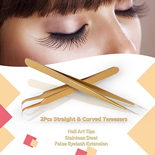 -. Title : Anself 2Pcs Straight & Curved Tweezers Nippers False Eyelash Extension Stainless Steel Pointed Clip Nail Art Nippers