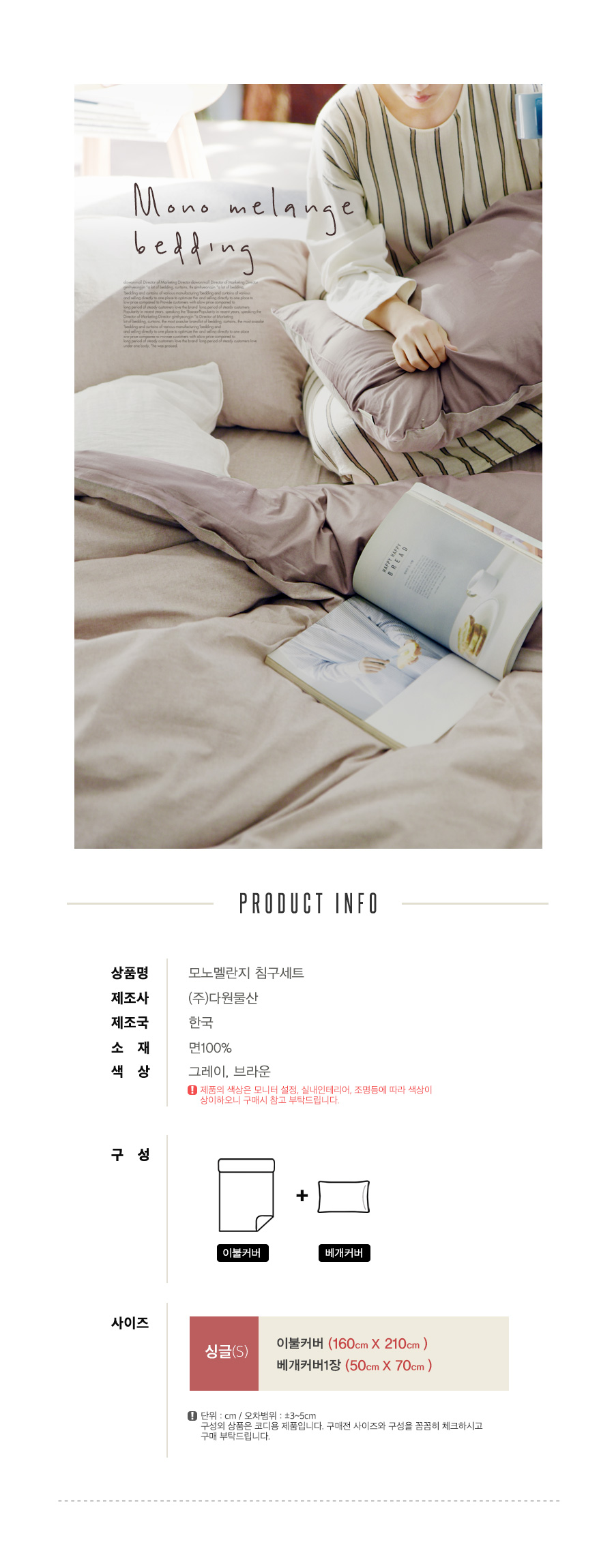 掛け布団カバー(160cm*210cm)+枕カバー1枚(50cm*70cm)