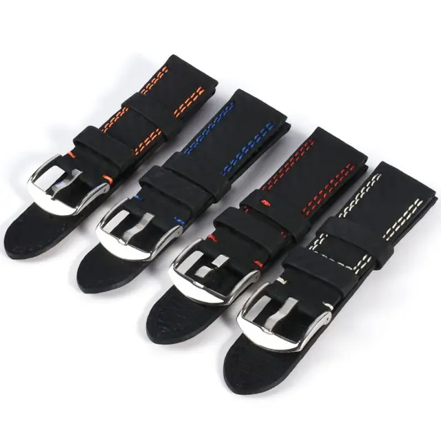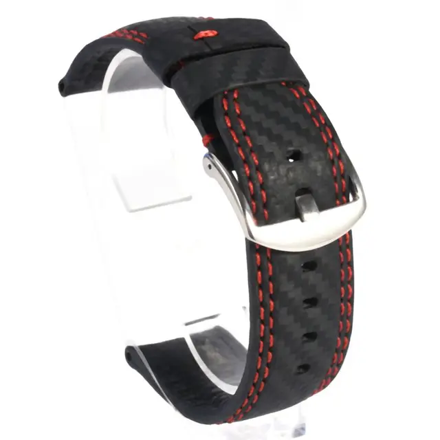 | [해외]2017 내구성 탄소 섬유 남성 블랙 정품 가죽 시계 밴드 스트랩 22 미리메터/24 미리메터 |