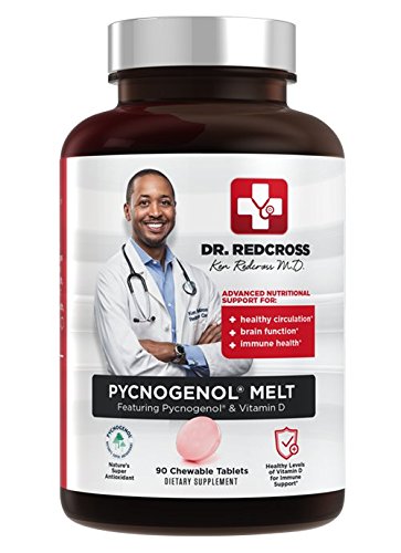 Studio : Redcross Wellness Publisher : Redcross Wellness Binding : Health and Beauty Product Description Dr. Redcross Pycnogenol Melts (PycnoMeltTM) - a New Way to Promote Wellness is Finally here!* One of my favorite all-star ingredients, Pycnogenol is one of the most versatile, clinically validated, health promoting compounds in the world of nutrition! In my estimation, Pycnogenol's wide body of research as botanical ingredient is unrivaled due to its 200 finished product clinical studies. What it can do for your health will amaze you. As a Physician, I am always on the lookout for ingredients that are wholesome, science-based and affordable. Pycnogenol's wide range of benefits make it a true "go-to" ingredient for my patients and now for the first time it's not only affordable, but available in a tasty, chewable tablet. So for those folks who can't easily swallow pills, or for those who just enjoy new delivery methods, this great orange-flavored PycnoMeltTM Pycnogenol chewable tablet is a unique innovation in the marketplace. Power-packed with a unique blend of Procyanidin antioxidants, Pycnogenol®'s attributes include: - Support for cardiovascular health, circulation, blood vessel health, immunity, brain function, skin health, and antioxidant defense*