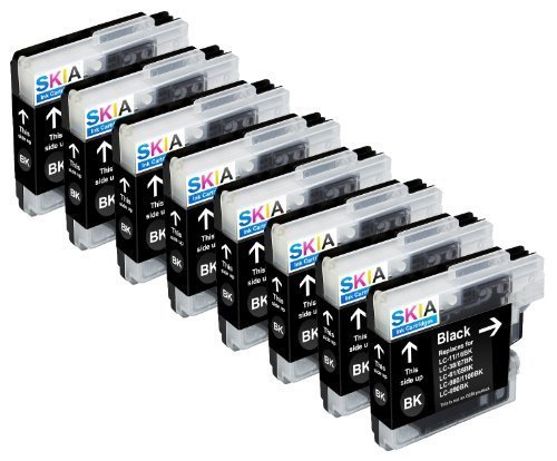 Skia Ink Cartridges ¨ 8 Pack Compatible with Brother LC61(LC61BK) for MFC-J410W, MFC-795CW, MFC-255CW, MFC-J270W, MFC-J415W, MFC-5895CW, MFC-250C, MFC-5490CN, MFC-790CW, MFC-990CW, DCP-J125