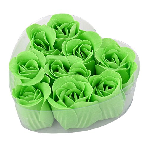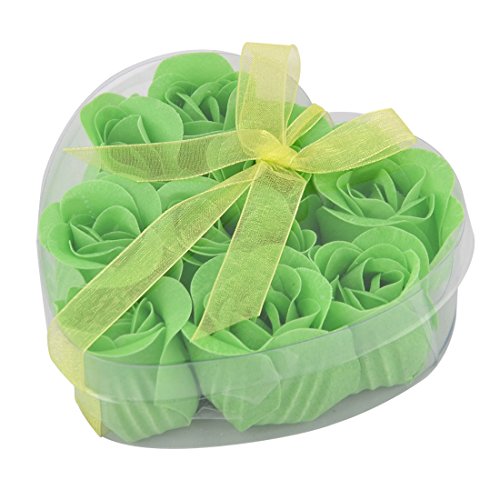 uxcell Wedding Festival Gift Heart Shaped Box Aritificial Soap Flower Petal 9pcs Green
