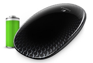 ???軽いマウスの操作には単三電池1本で、電池寿命は3カ月になります*1。また単三電池を2本入れるとしっかりした感触になり、電池寿命は6カ月まで延長されます*2。さらに市販の充電式電池も使用できます。