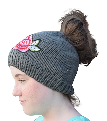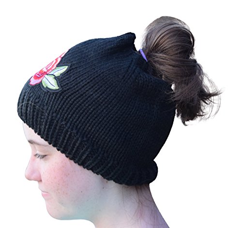 Binding : Apparel Product Description Wearing a beanie is a fun style, but what about when you have long hair and want to wear a bun? No more lumpy styles. This hat has a hole for hair and can let your pony tail come through and be worn as a messy bun or up-do. Wear on cold days to keep your head warm without extra layers.