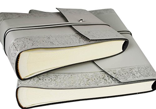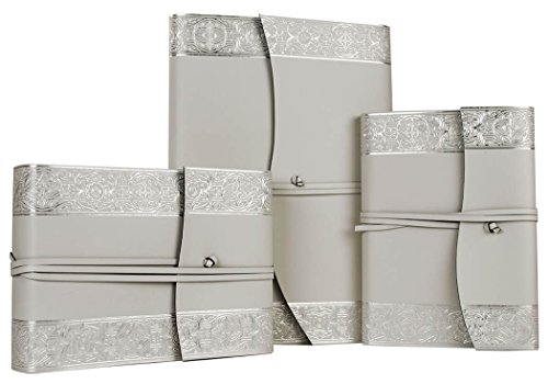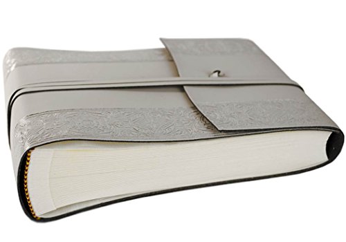 Angelus Small Silver Handmade Italian Recycled Leather Wrap Photo Album, Classic Style Pages (16cm x 22cm x 6cm)