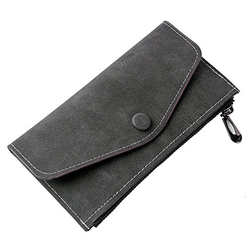 Material: Matte PU Leather Color: Black,Brown,Grey,Purple,Wine red Gender: Women,Girls Style: Fashion Closure:Buckle Pattern Type: Solid Structure: 6 credit card slots, 1 open compartments and 1 zippered pockets. Dimensions: 7.7 inch x 4.2 inch x 0.6inch (19.6 cm x 10.7 cm x 1 cm) Package Contents: 1 x Wallet