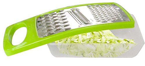 2 in 1 Handheld Cheese Grater Drum for parmesan & Multi Peeler-Slicer for table - lettuce shredder-stainless steel grinder with handy tray compartment (green)