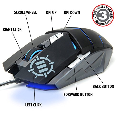 -. Feature : ENHANCE GX-M3 programmable optical gaming mouse works great with Dota 2 , Call of Duty: Black Ops III , Fallout 4 , Starcraft 2 , Team Fortress 2 , Civilization V , ARK: Survival Evolved & More / Ergonomic design with non-slip rubber finish and silicone side grips for a comfortable , fatigue free fit / 4 DPI and LED settings - 800 (blue), 1200 (green), 2000 (purple) and 2800 (red) | Five removable 6.8 gram coin weights allows users to fine-tune the physical feel of the GX-M3 / 7 Programmable buttons to adjust multiple mouse settings including polling rate , DPI & LED Accents | 500Hz Polling Rate for 2ms reponse time / Includes ENHANCE 3 Year Manufacturers Warranty