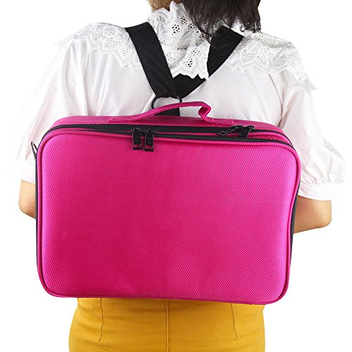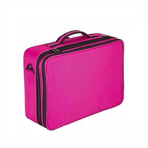 Samtour Professional Makeup Train Case Cosmetic organizer Make Up Artist Box 2 layer Large size 16.54" 11.42"5.51" with Adjustable Shoulder for Makeup Brush Hair style Nail beauty tool (Hot Pink)
