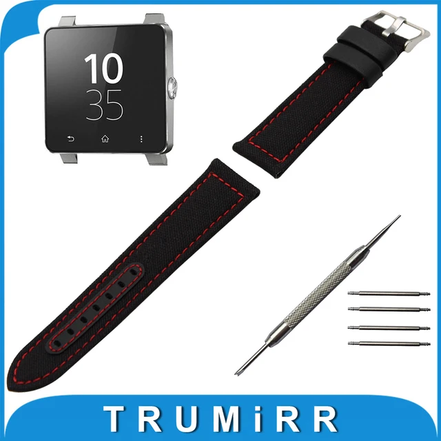 | [해외]24 미리메터 캔버스 + 정품 가죽 시계 밴드 + 도구 sony 스마트 워치 2 SW2 손목 패브릭 스트랩 손목 벨트 팔찌 블랙 브라운 |