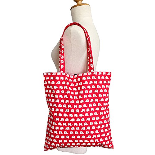 Red and White Elephant Reusable Grocery Shopping Tote Bag Bookbag Handbag Purse, Art Tote for Adult Teens College Girls