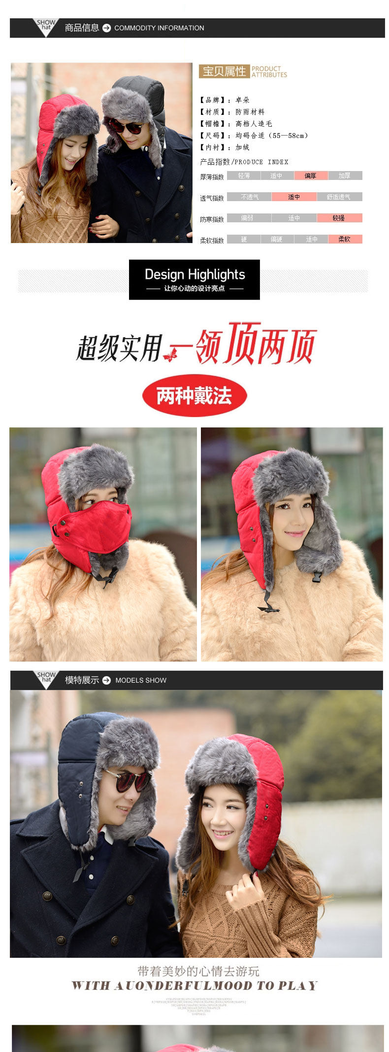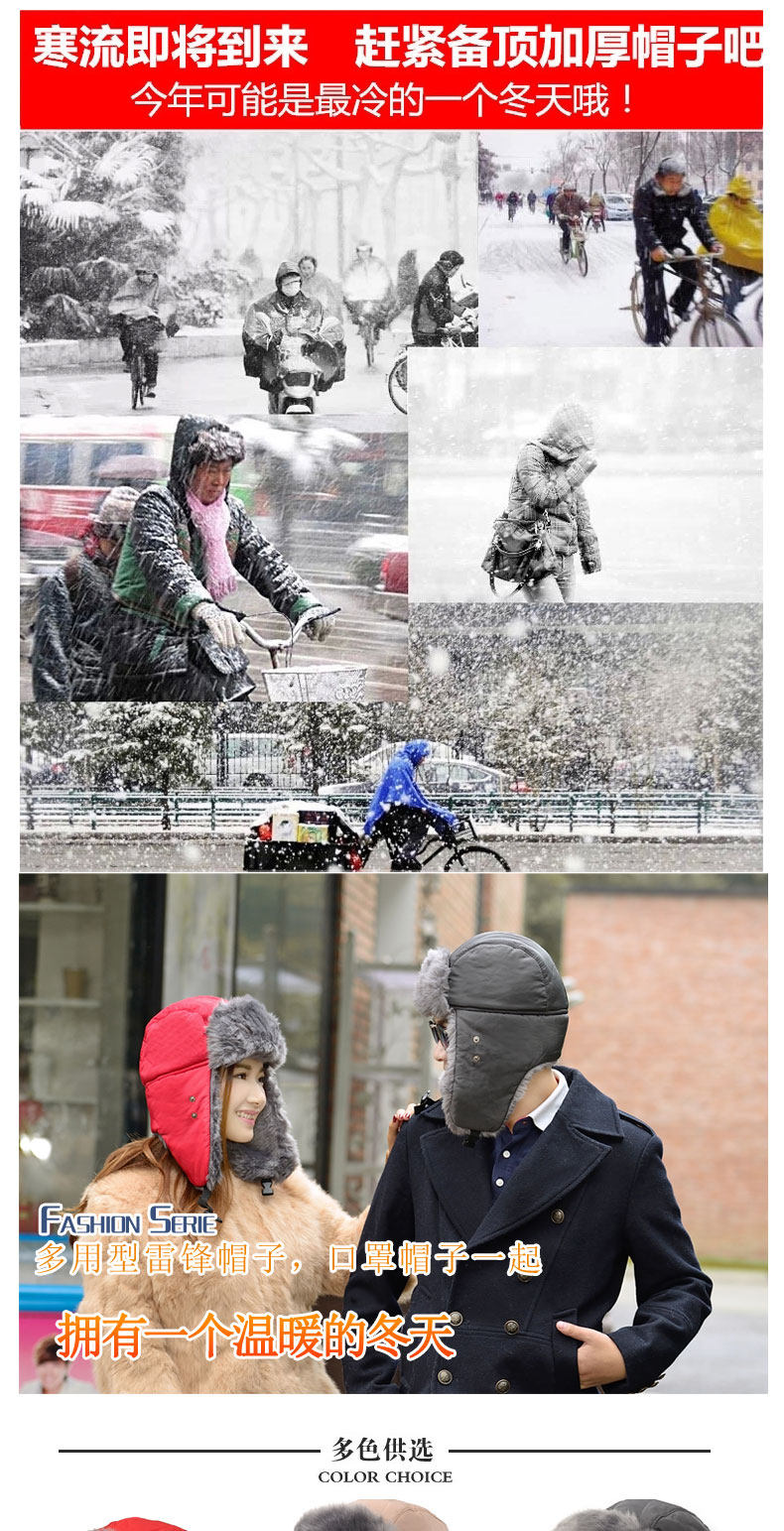 帽子男女士雷锋帽口罩冬季天棉帽韩版潮户外护耳帽滑雪保暖东北帽
